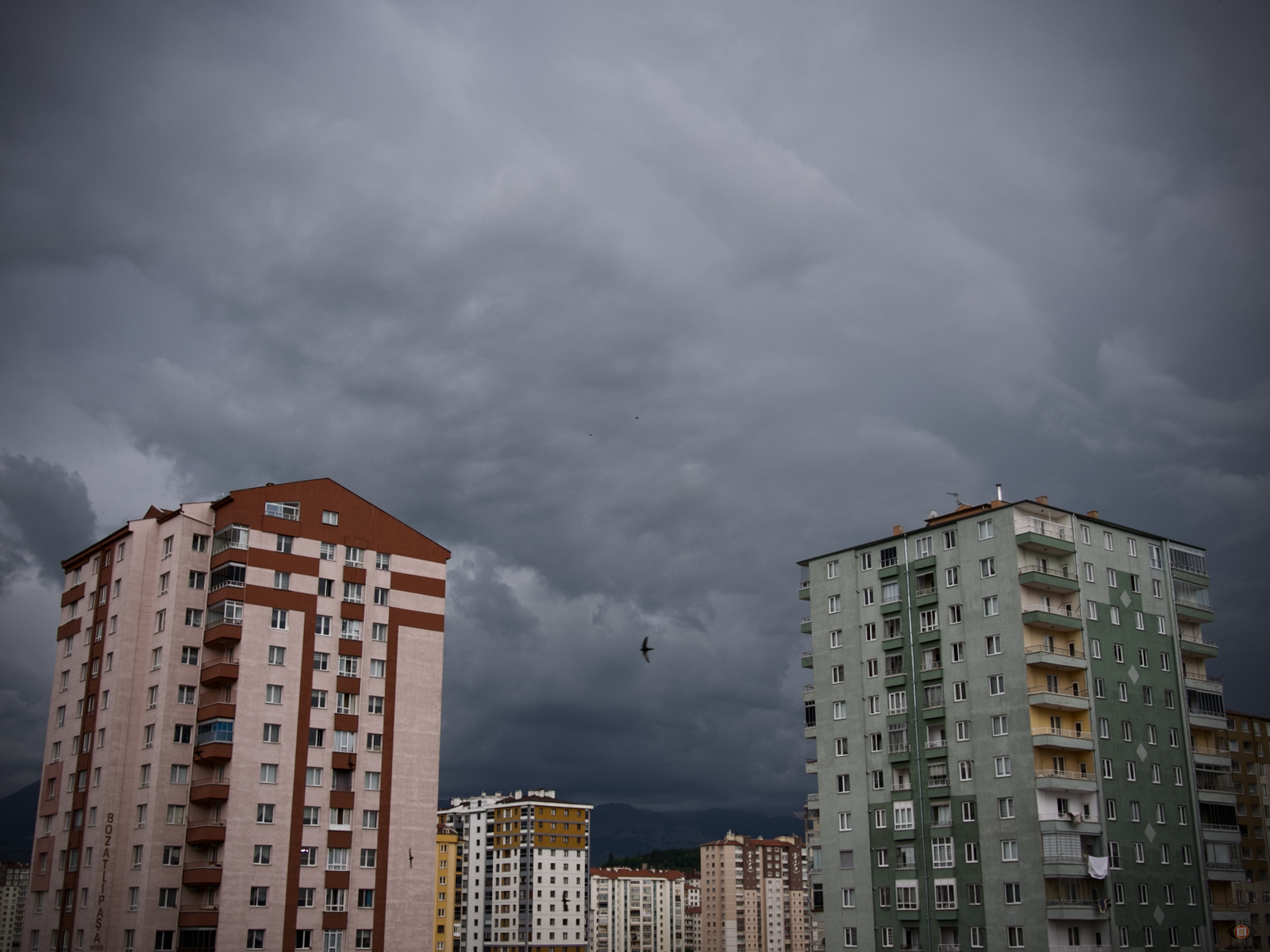Vans, beat-up and caked in grime, line the foremost parking spaces next to the occasional polished Mercedes. The vans contain families of Turks spilling out onto the ground; they sit on cardboard boxes or tattered rugs and cook on gas-bottle-fires; they wash their pans in the drinking fountain; their dying clothes do not move in the stale heat of late midday, draped over the pull-up and dip bars of the incompatible, state-of-the-art gym equipment.